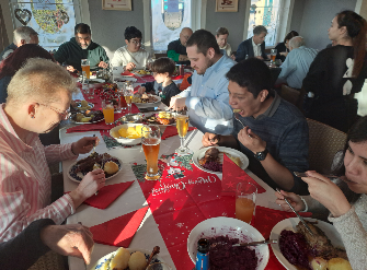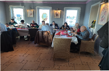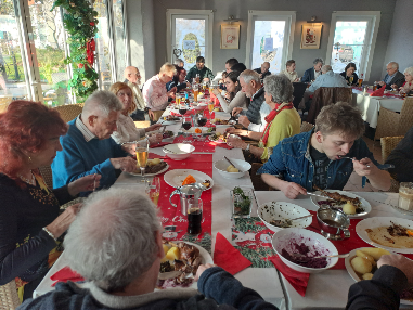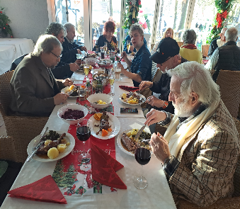 Nach einigen Schlückchen Sekt oder Orangensaft wanderten wir zum Cafe am Schäfersee, wo wieder Gänsekeulen, Kartoffeln, Klöße, Rotkohl und Grünkohl auf uns warteten